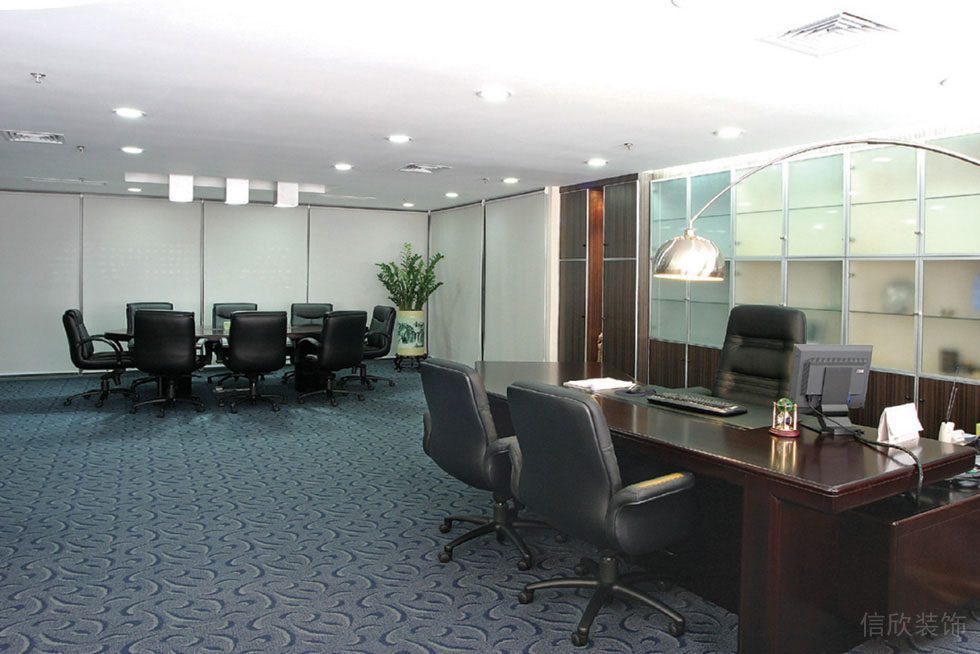 圖片說明: 華建偉業辦公室裝修設計,信欣裝飾公司設計案例。本案例位于寶安高科技產業園,辦公室面積280平方米,廠房區不在設計范圍內。