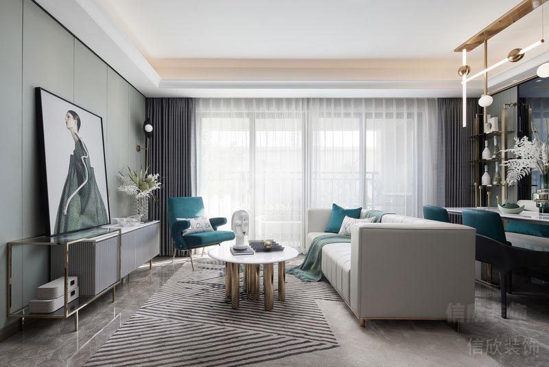 本案中客餐廳以淡雅素凈的硬裝基底搭配具有流暢線條,精湛工藝的時尚家具,將色彩的高度凝練與造型的輕奢個性融合,使得空間蘊含十足的感染力。