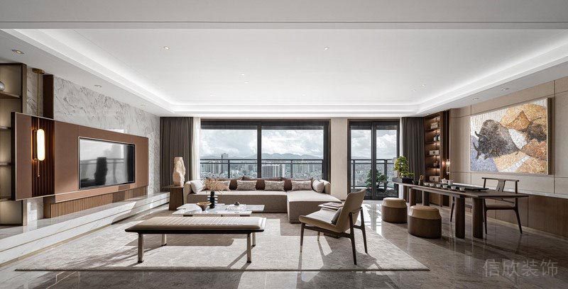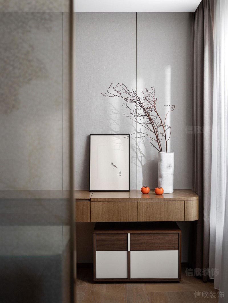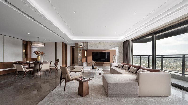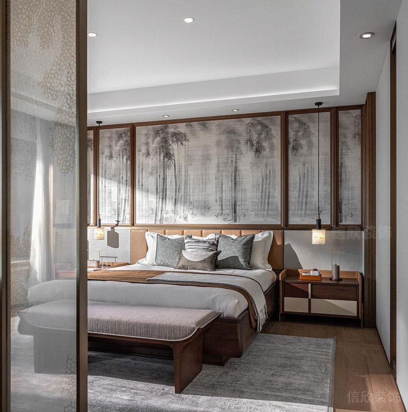 身處繁華的都市中,居者需要的住宅其實更是一個寧靜舒適的居住環境,在這個為你專門打造的生活空間里,都會象征著你對未來生活的某種期待,經歷過時間的雕琢,從布局到家具,從材質到選色,都所盡可能的呈現著自然大氣的舒適感。 主臥由半透明的屏風將活動空間和休憩空間區分開來,在不割裂臥室結構的同時賦予休息區最為純粹的靜謐體驗。