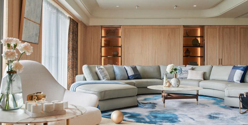 深圳市寶安區(qū)御品巒山花園過(guò)道 白色的長(zhǎng)回形頂,原木的地面,通達(dá)隨性的自然之美。