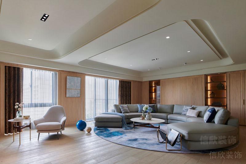 深圳市寶安區(qū)御品巒山花園客廳 大面積的原木風(fēng)地面,和護(hù)墻板的引用,寬闊明亮的客廳設(shè)計(jì),是對(duì)自然生活美的一種向往。