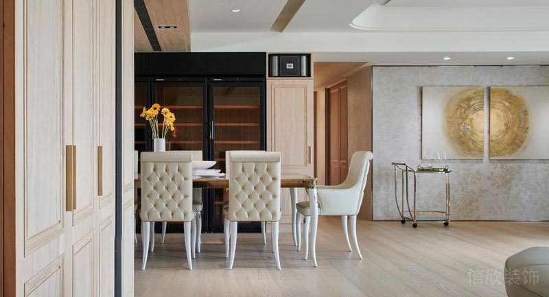 深圳市寶安區(qū)御品巒山花園餐廳 餐廳的擺放,實(shí)用性和功能性強(qiáng),開(kāi)放式的廚房,原木元素的酒柜;讓一切都能徹底的放開(kāi),不受任何的約束。