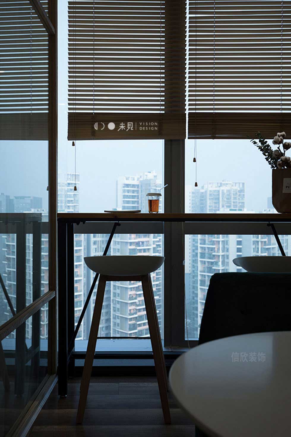 中島臺金屬吧椅的洽談區(qū),在大面積的背景墻下,顯得格外精致,木藝隔斷加白色圓形水波紋的背景墻,看上去如平靜的水面,泛起一絲漣漪,靈動且充滿活力的韻味。