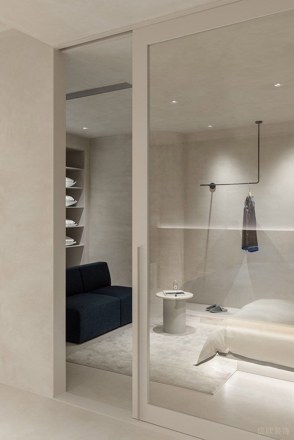 設計理念:本案是一所現代風的新型科技枕頭專賣店裝修設計案例,由深圳信欣裝飾公司的設計師團隊傾力打造,該作以現代風格入手,門廳以落地窗玻璃,讓光線完美的引入到室內,提高了室內光線的亮度,也讓室內的布置和特點展示的一覽無余,讓人走道店門口就能看到店鋪的主推和展示,起到了宣傳的效果。室內采用了大面積的中性色調設計,賦予了一種自然,舒適和雅致的情調。頂面通過長條形的燈膜分割,柔和的燈光,延伸感讓整個空間更飽滿更開闊。白色LOGO的發光字設計,看上去更醒目更亮眼。所有島臺和家具的展示,通過點,線,面三個方面的組合,不僅凸出了黑灰兩色家具的線條美,還能更好的還原產品的美感和高級感。整個場景通過柔和的燈光對比,讓整個環境產生了一塵不染的清新脫俗的氣質。