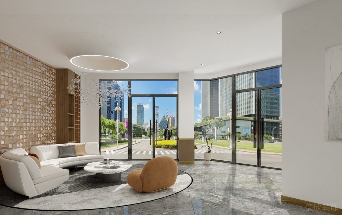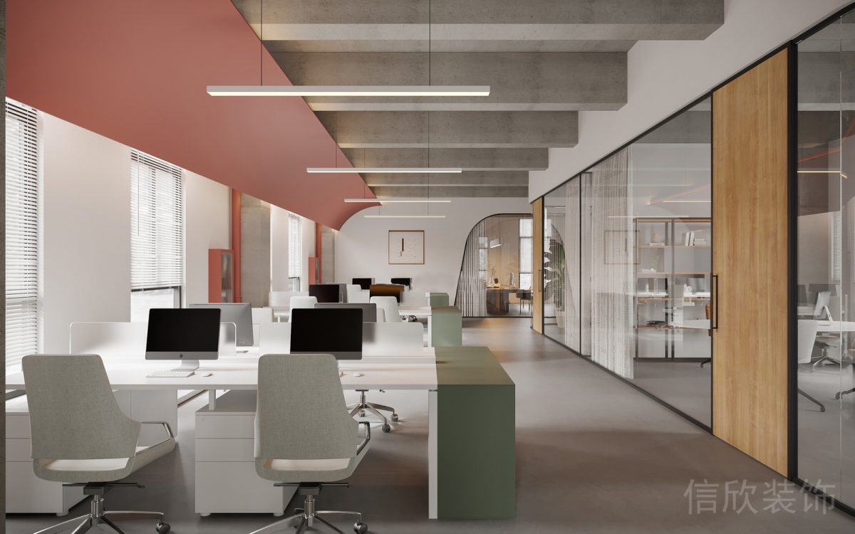 現代風格辦公室裝修設計效果圖,簡約輕奢的裝修風格,在滿足使用功能的前提下,摒棄多于的裝修裝飾。色彩多采用黑白灰等無彩色,裝飾多采用簡潔直線條,材料多應用現代工業所生產的裝修材料,如玻璃、地毯、各種金屬材料等。辦公卡座較少應用帶屏風的卡座,一般采用簡單的鋼木結構辦公卡座,對坐模式。此類裝修風格優點:裝修費用低,裝修快捷工期短,辦公室利用率高,是公司辦公室裝修中應用最多的裝修風格