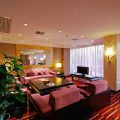 餐廳用餐卡座區, 采用了黑色皮質座椅與布藝沙發的組合搭配,使得餐廳增加年輕感,也為用餐者提供多種入座體驗。