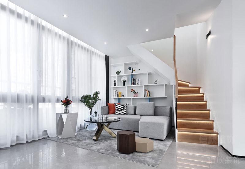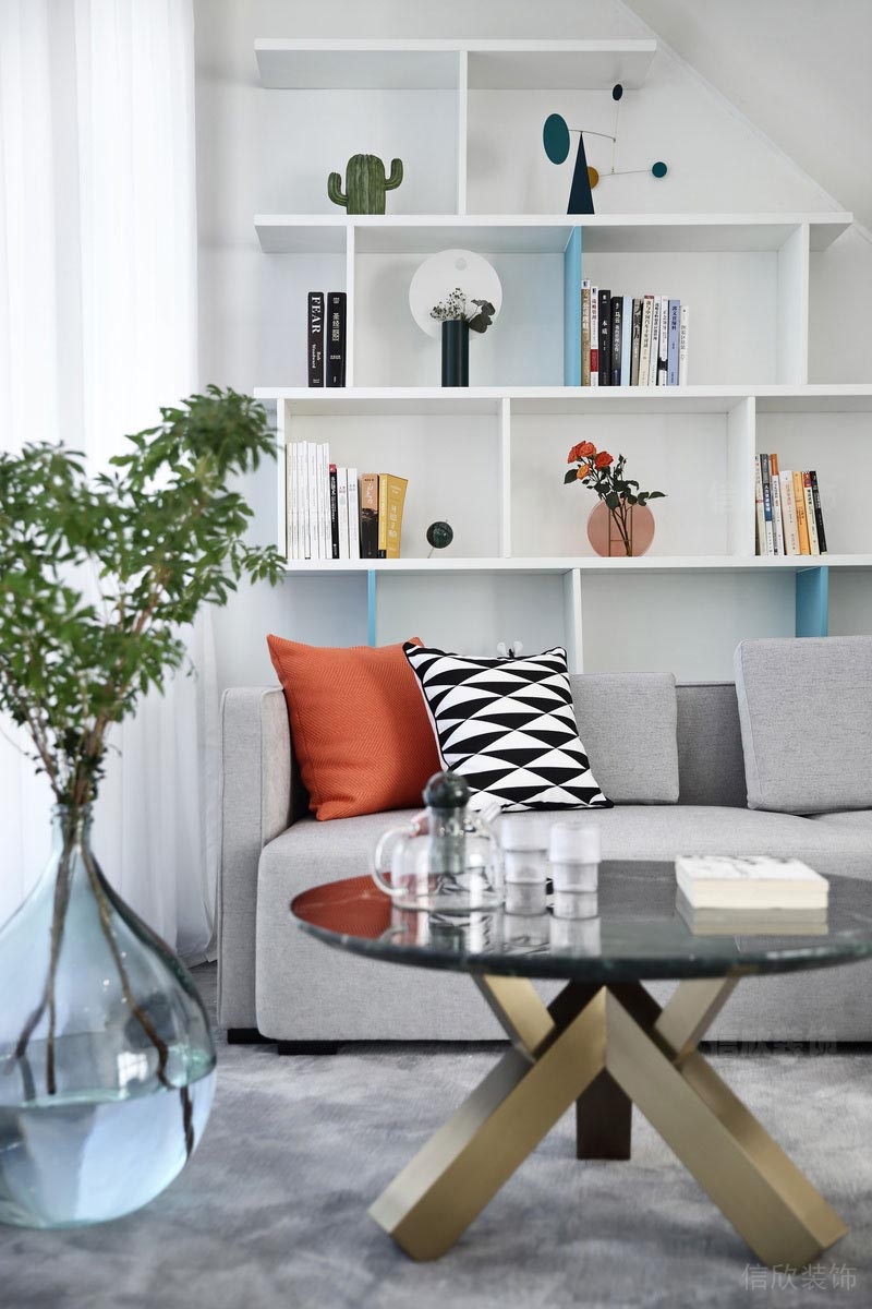 灰色的沙發(fā),白色的書柜,現(xiàn)代黑色茶幾,在這里你可以享受到,最富足最精彩的閱讀時光。