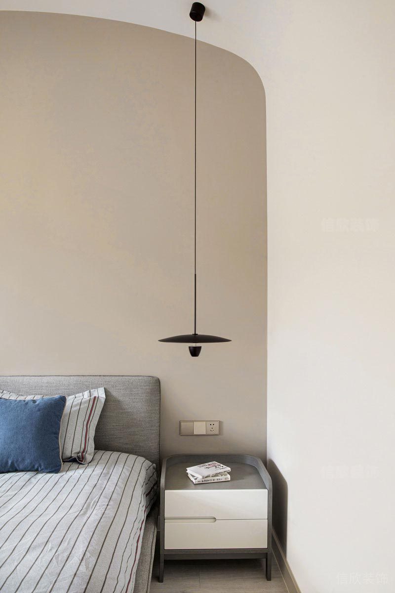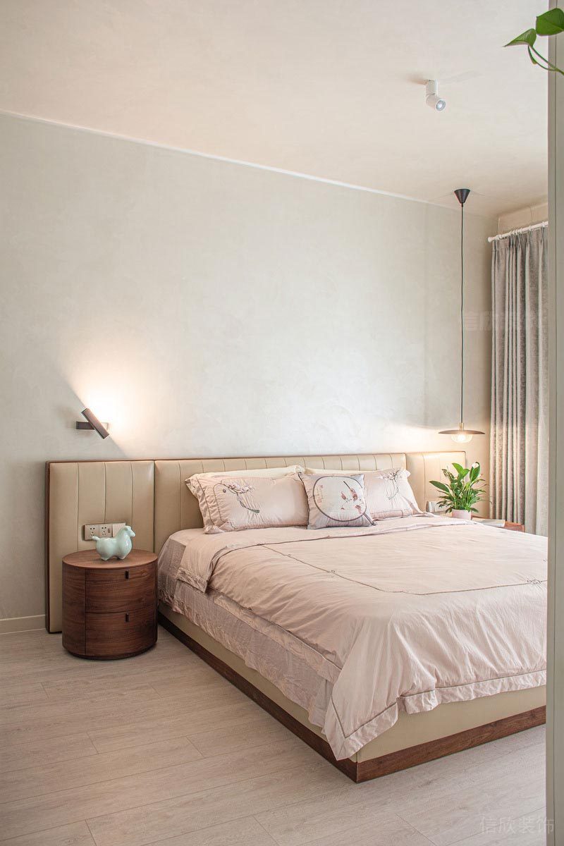 二樓是主臥,整個空間有很多圓弧元素 圓弧床緣、圓潤燈盞、古樸小桌,緩和有序 去掉尖銳的沖突,似主人緩和友好的生活態度 以及東方飾品,傳遞東方優雅大氣 以物會人,感知居者性情與愛好