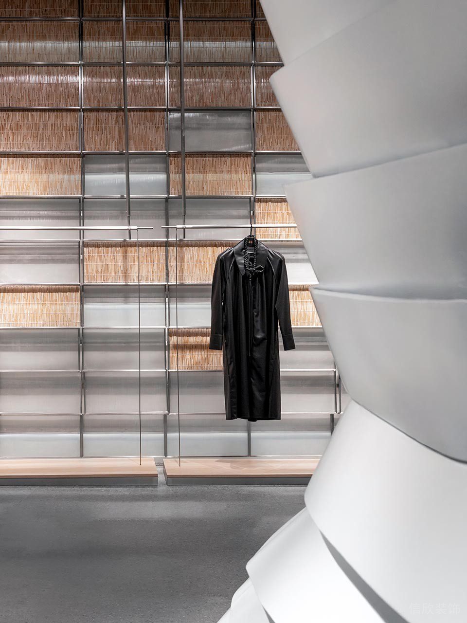 設計理念:生態智庫服裝店位于深圳市龍華區大商場內,結合客戶的需求,信欣裝飾公司的設計團隊,選擇了原木風格體現服裝店出平淡,自然和綠色生態的特點,在車水馬龍,人來人往的鬧市區,一抹清新的氣息達到鬧中取靜的效果。外立面的設計選擇半圓弧多層次的頂面,讓線條的美感更強,開放通透的門廳,讓內部的裝修場景,一覽無余的展現在客戶的面前。大廳則保留了原始的結構噴黑,刻意的加入了管道和軌道燈的效果,體現了金屬的冷酷感,白色的圓柱,好像一顆顆盛開的大樹,作為頂面的支撐。鐵藝的展架,灰色的金屬和原木的小方塊分隔的方式,讓衣服看上去更經典更有高級感。恰如其分的綠意點綴,消除了金屬材料的冷峻,更有自然和工業感結合的新奇感。整體的服裝店設計,創意超前,寬闊大氣,成為追求潮流時尚的年輕人和網紅們的鐘愛的打卡地。