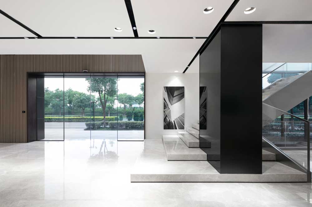 首層空間的主要功能為接待及展示,入口處為兩層挑空空間。