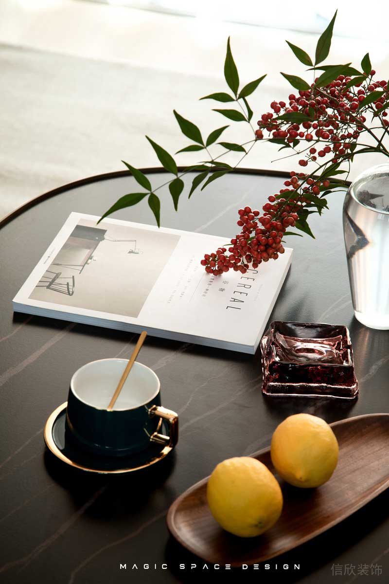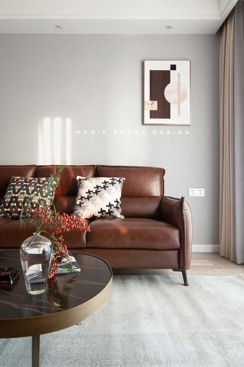 茶幾中些許的黃銅色金屬材質的融合,呈現出一種秩序之美。