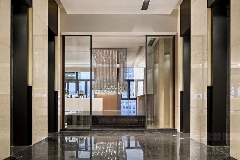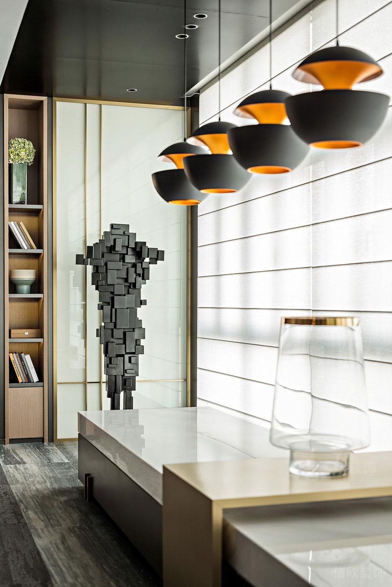 天然的黑色大理石紋,一副水晶吊燈組成的山水畫,充滿了設(shè)計(jì)感和創(chuàng)新,在燈光完全打開的情況下,就變成一顆流光溢彩,耀眼奪目的明珠。