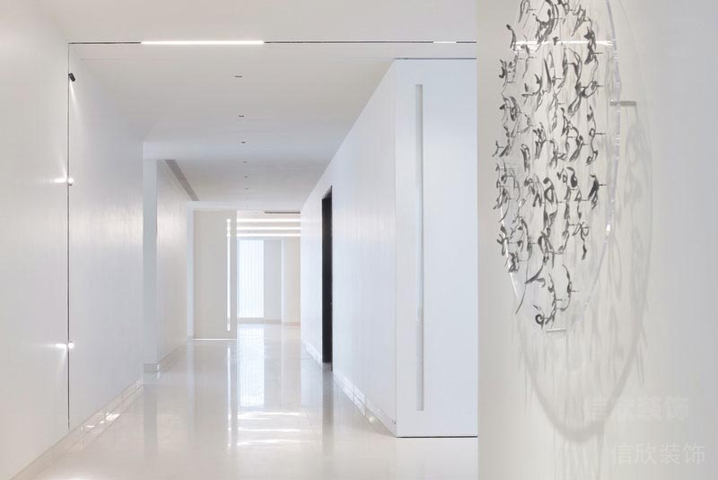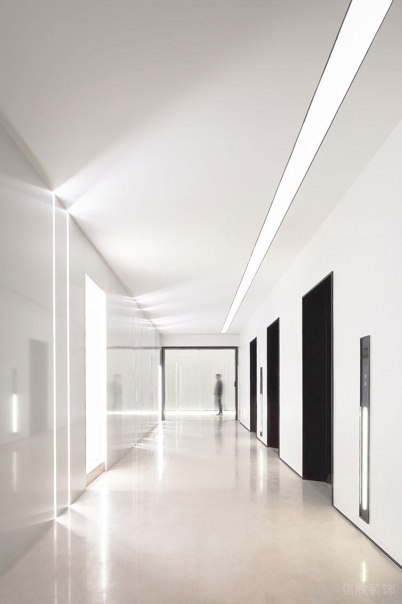 白色開闊的過(guò)道,黑色的燈帶,強(qiáng)調(diào)線條感,是一切顯得活潑開朗,富有想象力。