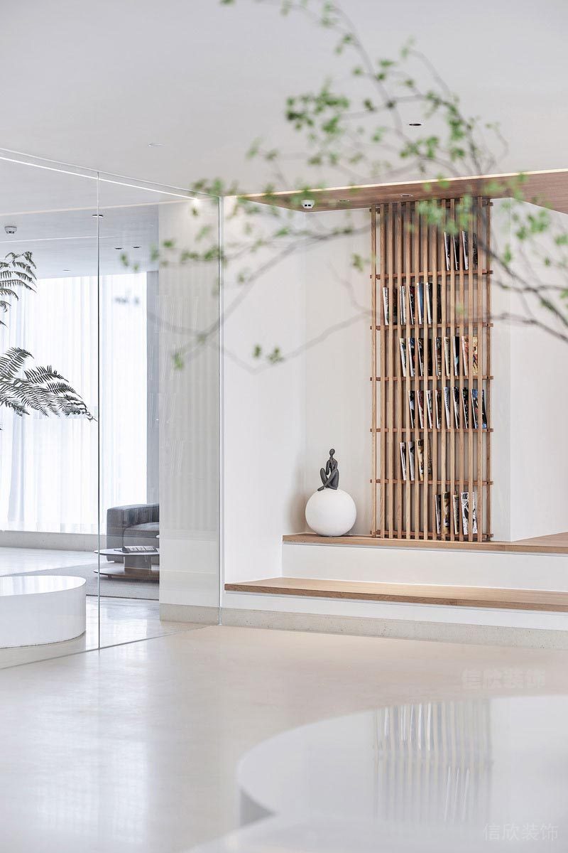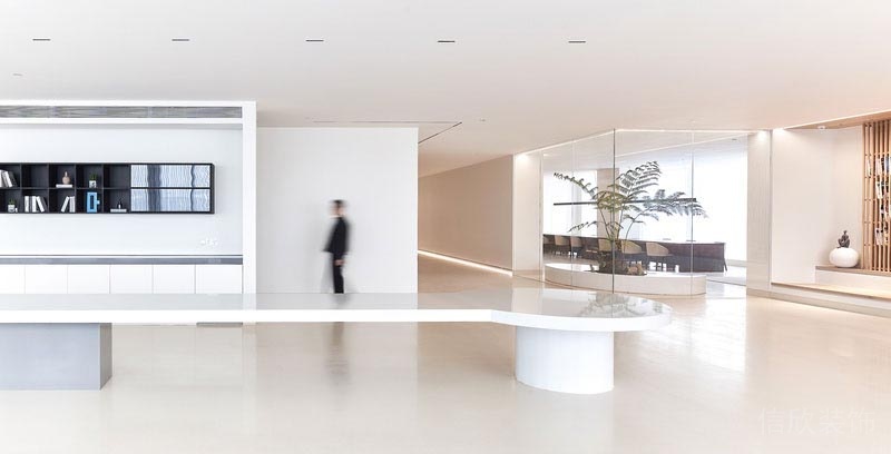 前臺(tái)是一個(gè)企業(yè)的文化精神體現(xiàn),也是客戶第一眼看見(jiàn)的地方,先聲奪人,留下深刻的印象尤為重要,大面積白色的搭配,空間開闊,視覺(jué)上給人的感覺(jué)無(wú)限的放大,干凈,一塵不染;有種清水出芙蓉,天然去雕琢的詩(shī)意。