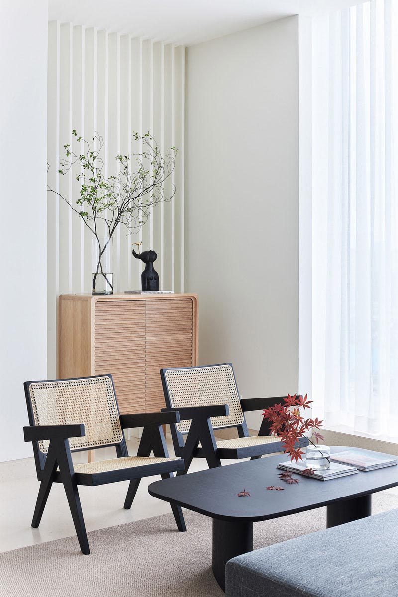 臨窗拆除飄窗作為卡座區(qū),休閑和會(huì)客兼顧,望著遠(yuǎn)方的美景,與客戶暢談天下,談笑間完成工作,頗有羽扇綸巾,指點(diǎn)天下的豪邁。