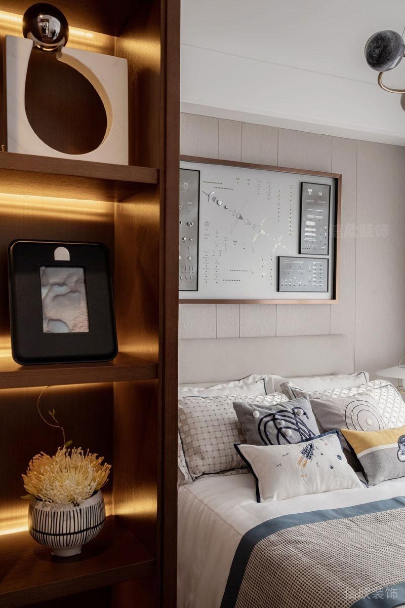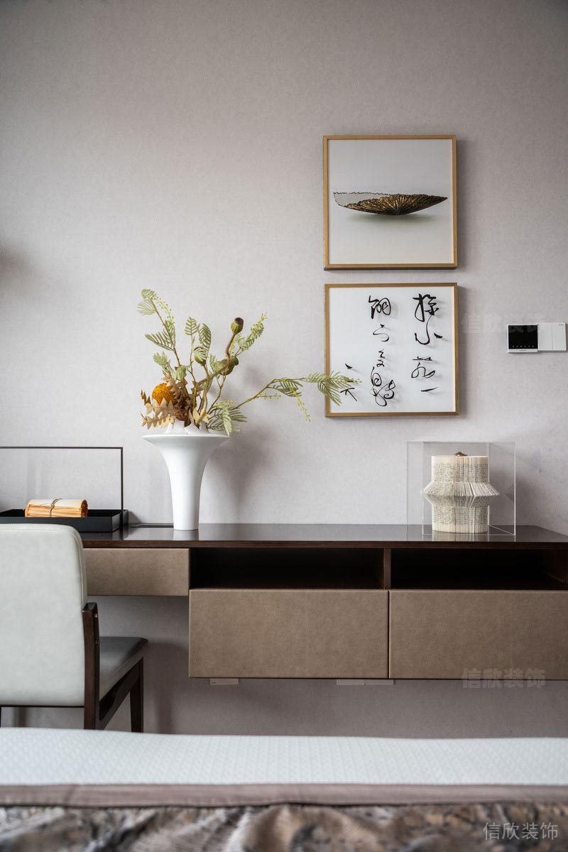 富有中式情調(diào)的背景墻,考究的新中式家具,顯示出古老中國(guó)元素和現(xiàn)代時(shí)尚相融合的另一番簡(jiǎn)潔的精美,書桌代替背景墻,是主人文化底蘊(yùn)的體現(xiàn)。