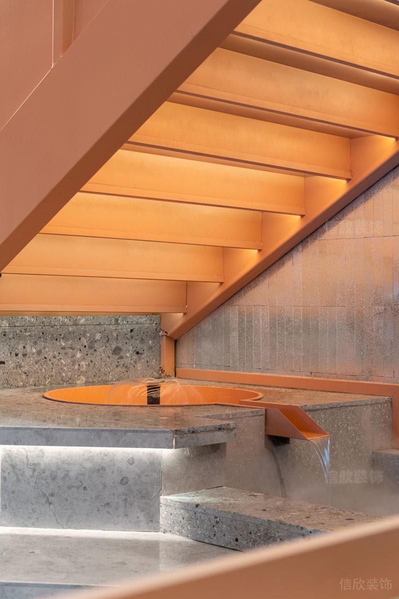 灰色的樓梯,在燈帶的裝點下,如山澗溪流在緩緩流淌,君子之風的瘦骨竹,在一輪明月的照耀下,如一副潑墨寫意的山水畫。