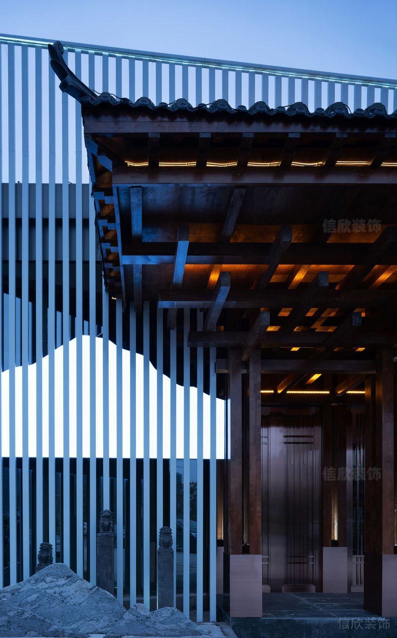 深圳市龍華區中餐廳門頭 如山峰一般的背景,一座古色古香的建筑躍然其中,如乍出冷梅般讓人眼前一亮,實木仿古雕欄畫棟的宅院,比起磚瓦檔次更高,更有韻味,三門式的設計,大氣開闊;沉寂了千年的故事,等著你去聆聽。
