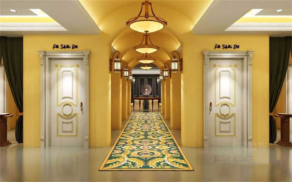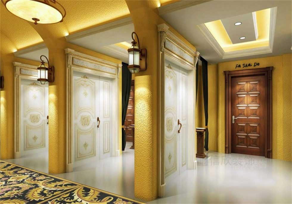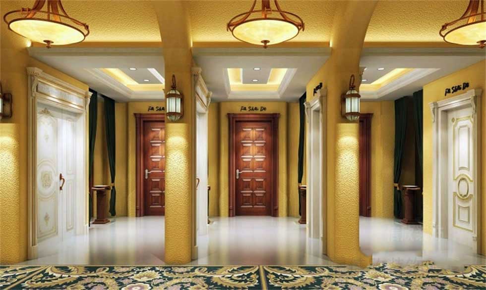 天然石材作為外墻的包裹,顯得很有歲月的沖刷感和歷史的文化沉淀,亮眼的黃色主色調(diào),在外面就能看到一道道歐式宮廷般的實木門,沉重而大氣。