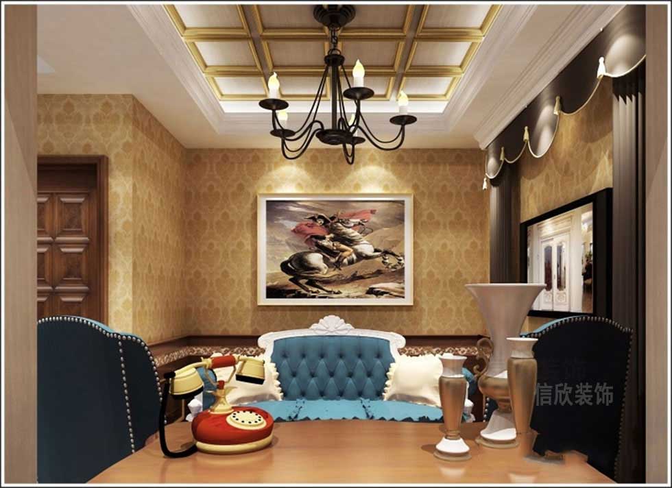 展廳的設計以歐式風格為主,通過小方格的頂面,分開兩個洽談區(qū),方便分開談判的同時,也顯得更加精致,在歐式油畫和洛可可風格的家具中,體驗細膩而浪漫的歐式情調(diào)。中間壁爐式的小隔間為主體,體現(xiàn)出傳統(tǒng)歐式文化的理念傳承。