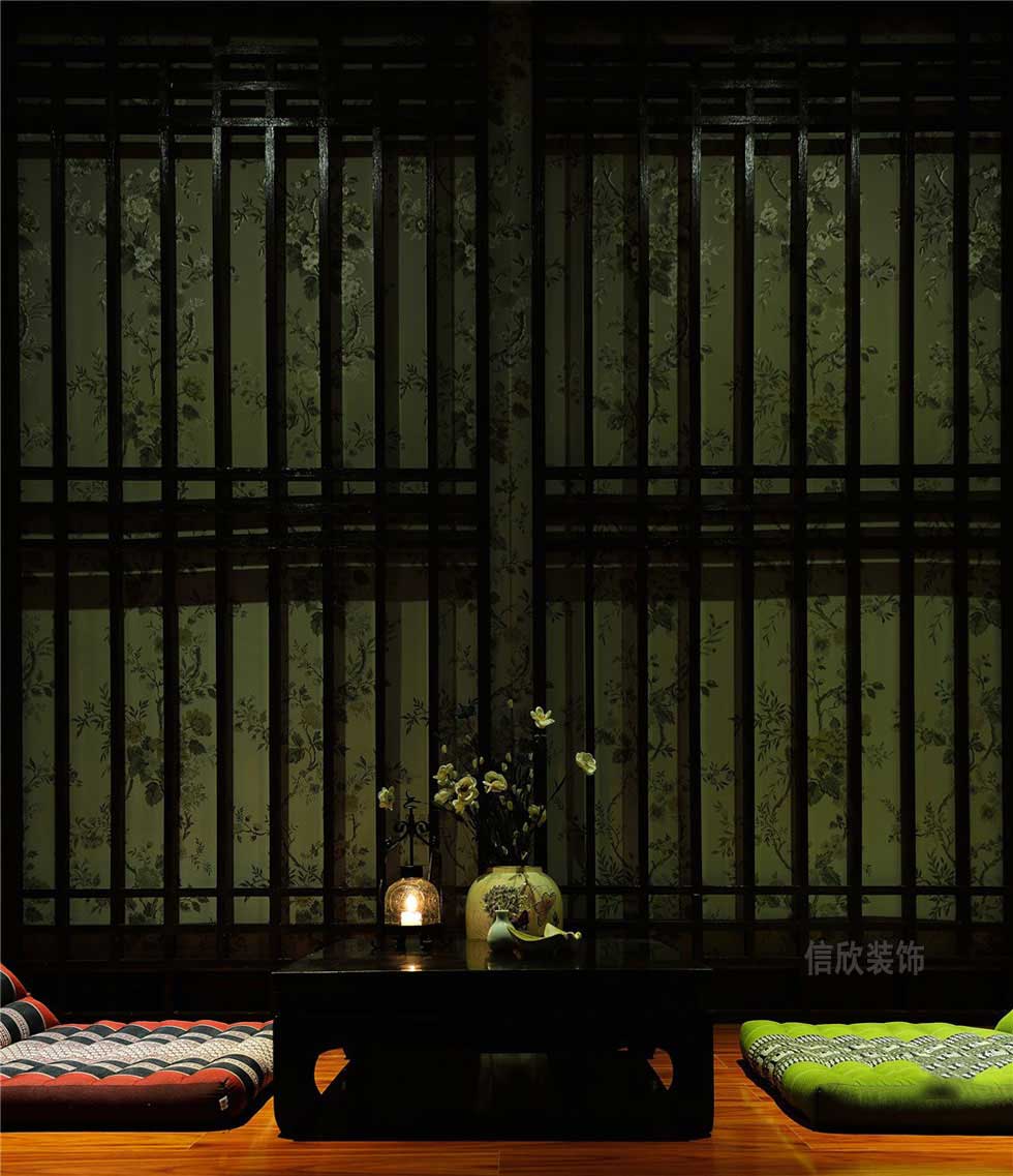 小回形頂的分隔,讓頂面看起來空間更精致合理,金色花紋的精雕細琢,滿滿的藝術品之感,舒適的布藝沙發,木線條和雕花隔斷的應用,古風的檀香氣息撲面而來,讓人身心放松。