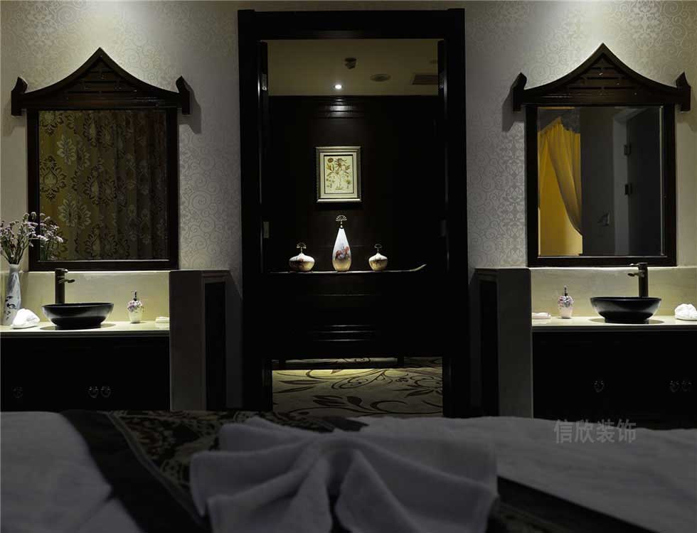 設計理念:本案是一所新中式風的美容養生會所裝修設計案例,隨著歲月的沉淀,中國傳統文化散發了愈來愈迷人的魅力,中式設計風格也再一次風靡了現代社會。會所裝修設計中,高檔古典的中式風格備受歡迎,隨著現代社會的發展,古典中式風格融合了很多現代元素,形成了新中式設計風格,這在現代中式會所裝修中也運用的很廣泛。新中式會所設計說明中講究雕刻、彩繪,典雅而高貴,在現代背景下,新中式會所設計有了新發展。每一個高檔硬木,經過工藝大師的精雕細刻,讓每個裝飾品仿佛跨越了歷史長河,來到了現代社會,增添了幾分文化底蘊;而淺亮色的靠墊、造型簡單的燈飾,又很好的體現了現代感,充滿了藝術性。
