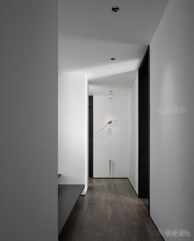 深圳市南山區雙子灣過道 由于過道狹長的比例,設計中舍棄了一部分書房的空間做了內退,打破了一米寬的視距,做了踏步作為進入榻榻米書房的入口,讓本來冗長的感受瞬間變得寬闊的同時賦予一定的趣味性。