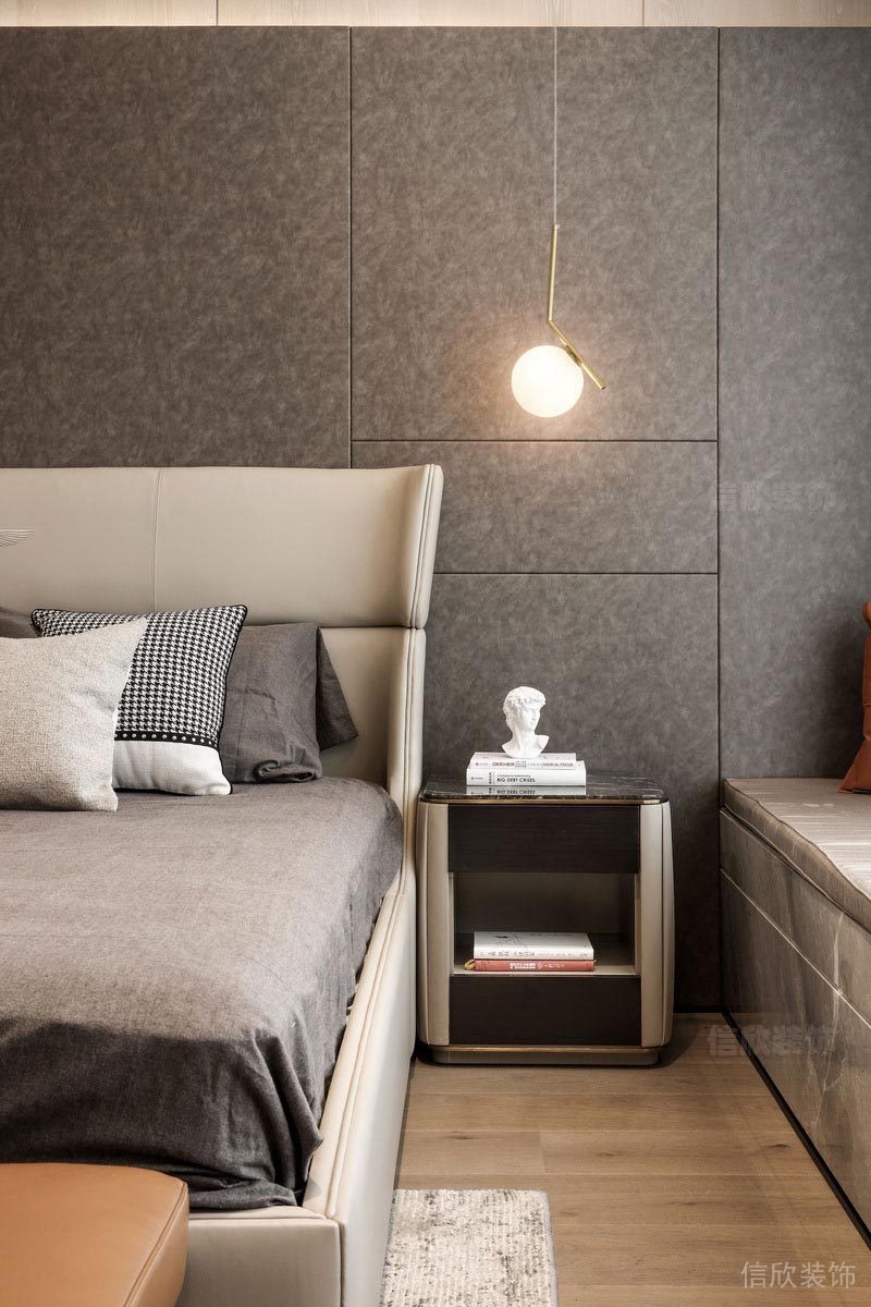 硬包和木紋飾面板,搭配天然優美的人造石飄窗,寬大的皮藝雙人床,溫暖中讓您的夢鏡無限大,無限遠。