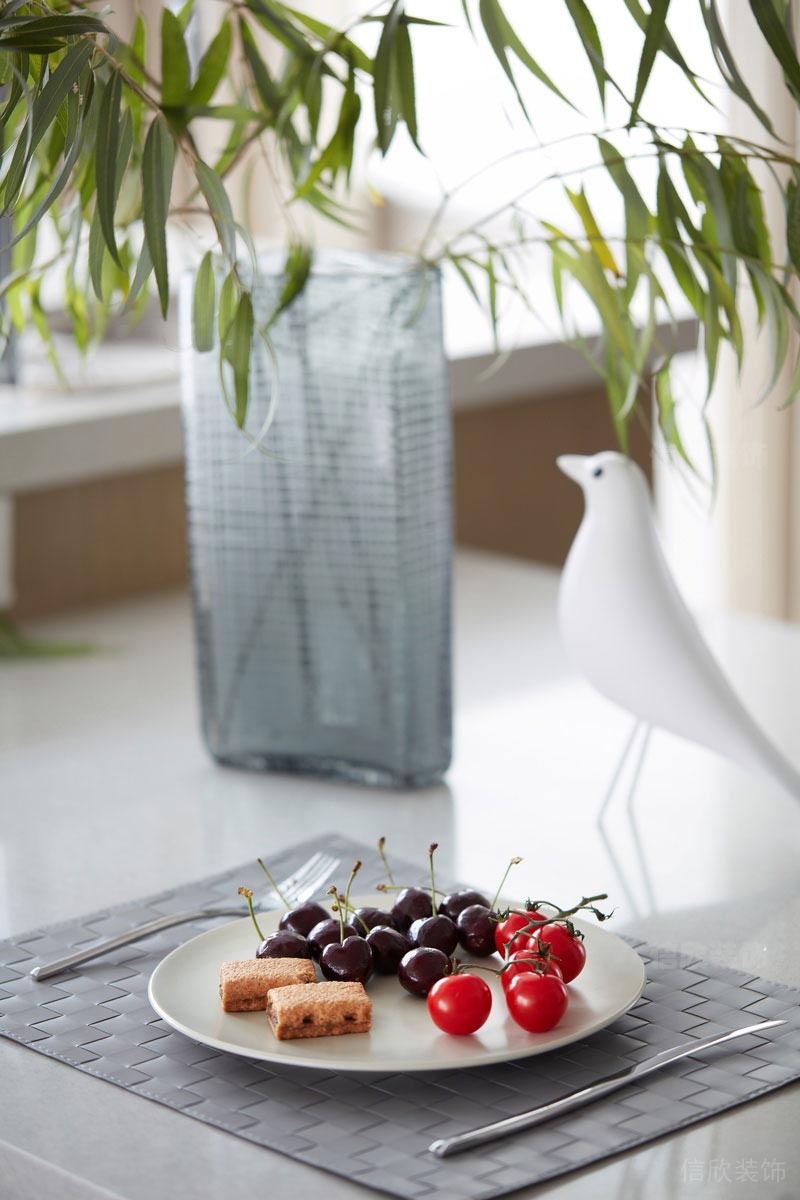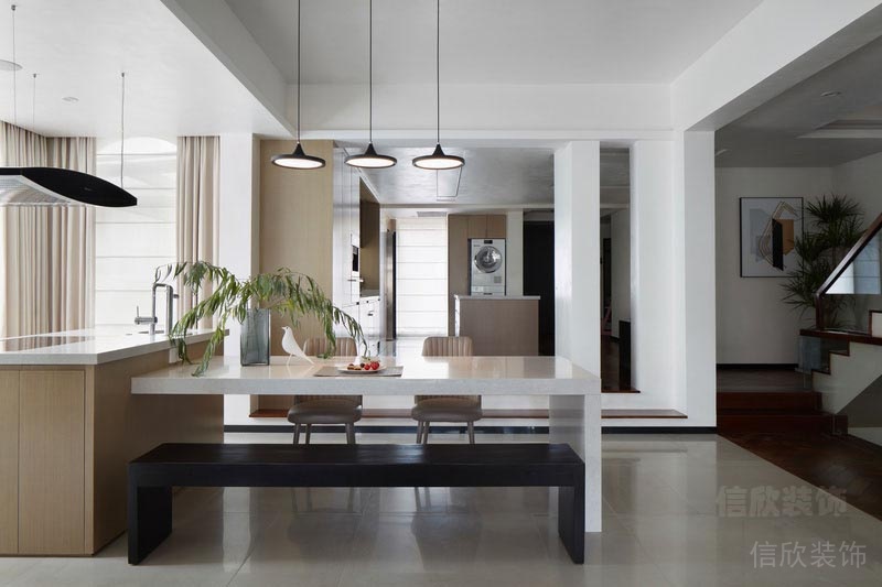 白色天然人造石餐桌,帶洗手盆的配置,實用方便,功能性強(qiáng)。