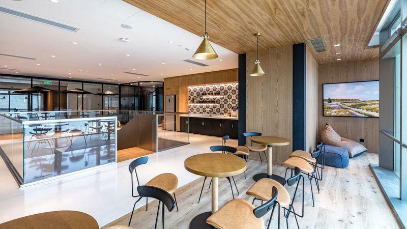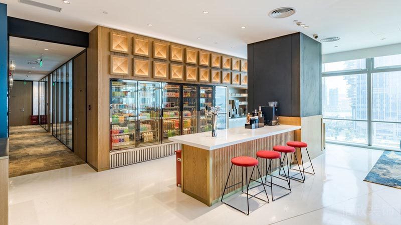 深圳市南山區田園辦公室休息室 大面積的玻璃隔斷,滿足了隱私性的要求,榻榻米式的雙層實木休息區,酒店般的奢華體驗。
