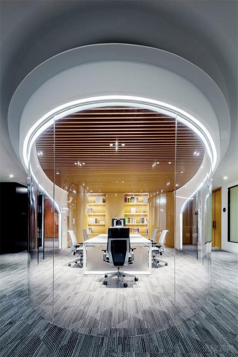 深圳市南山區辦公室會議室 透明圓形會議室,藝術感和科技感兼備,滿足了會議室私密性的隔音效果,同時不影響視覺, 外面的環境一覽無余,但不會存在壓抑。