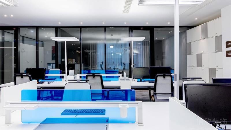 深圳市南山區辦公室辦公區 白色的簡約和高冷,開放式的辦公空間,消除了同事之間的隔閡,增多了彼此間的交流和合作,藍色的加入,提升了整體的科技感和未來感,讓整個空間立馬活躍起來。