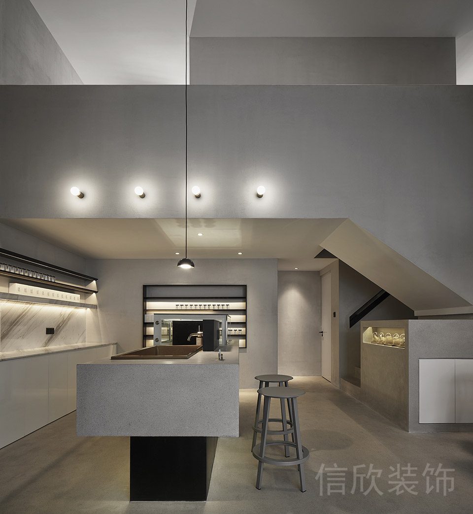 過(guò)道藝術(shù)感強(qiáng)烈,極簡(jiǎn)的色彩搭配出高級(jí)質(zhì)感,黑白墻面,吊頂與墻面弧度造型連接到一起,柔和空間感,地面白色烤漆,頂面筒燈與墻面壁燈相結(jié)合,藝術(shù)品的擺放更突出了空間時(shí)尚簡(jiǎn)約氛圍。