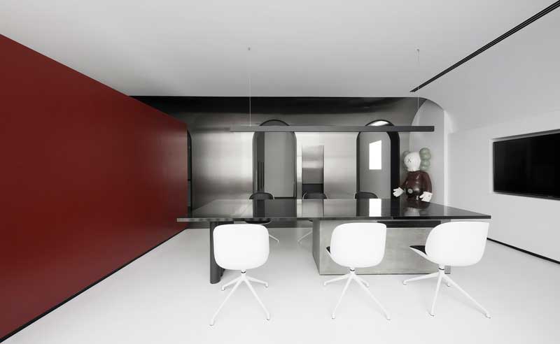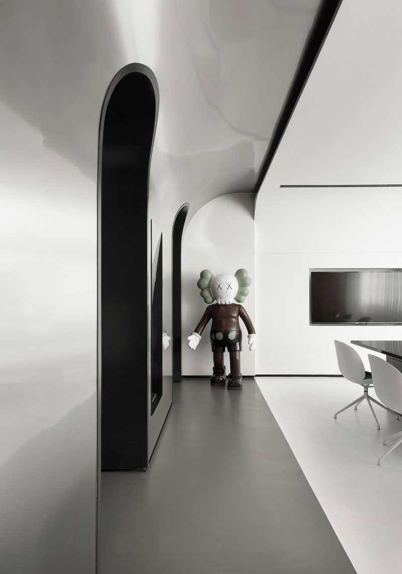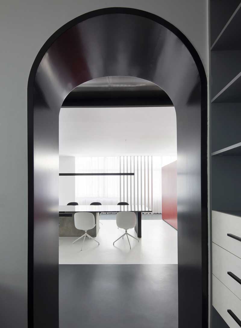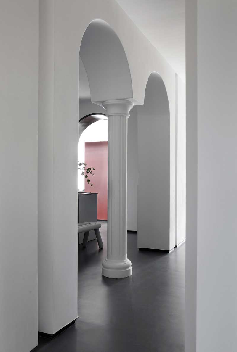 白色的拱形門和羅馬柱的元素,使得辦公室既能體現極簡風的簡潔干練,同時也具備歐式的優雅,兩種相結合,簡單素雅中不失,新穎的設計感和豐富的想象力。