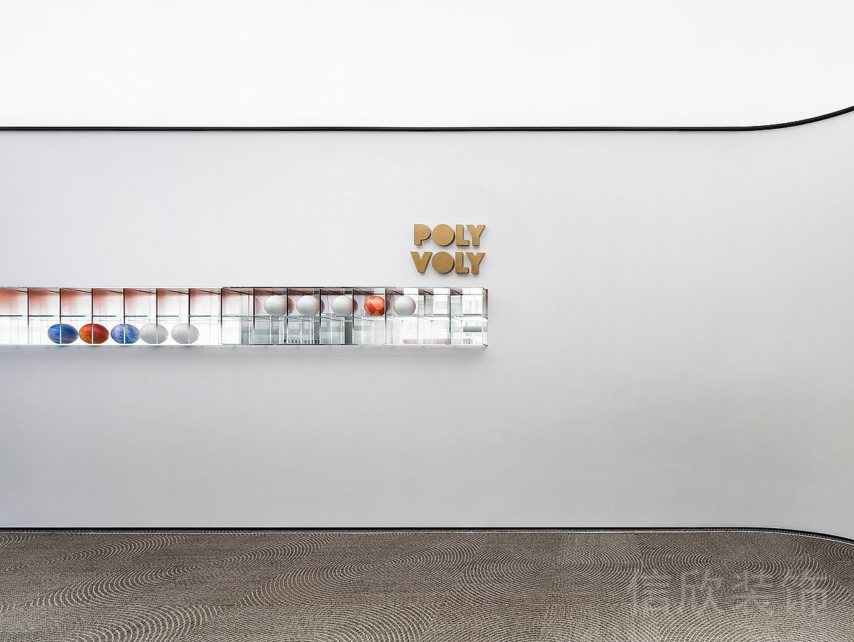 圓弧形的整體空間形狀,沙發和壁柜結合頂面的形狀,使整體融合為一,統一性更強烈,頂面獨特新穎的設計理念,玻璃透明材質,加圓形的球體,給人的感覺現代時尚,造型搶眼。