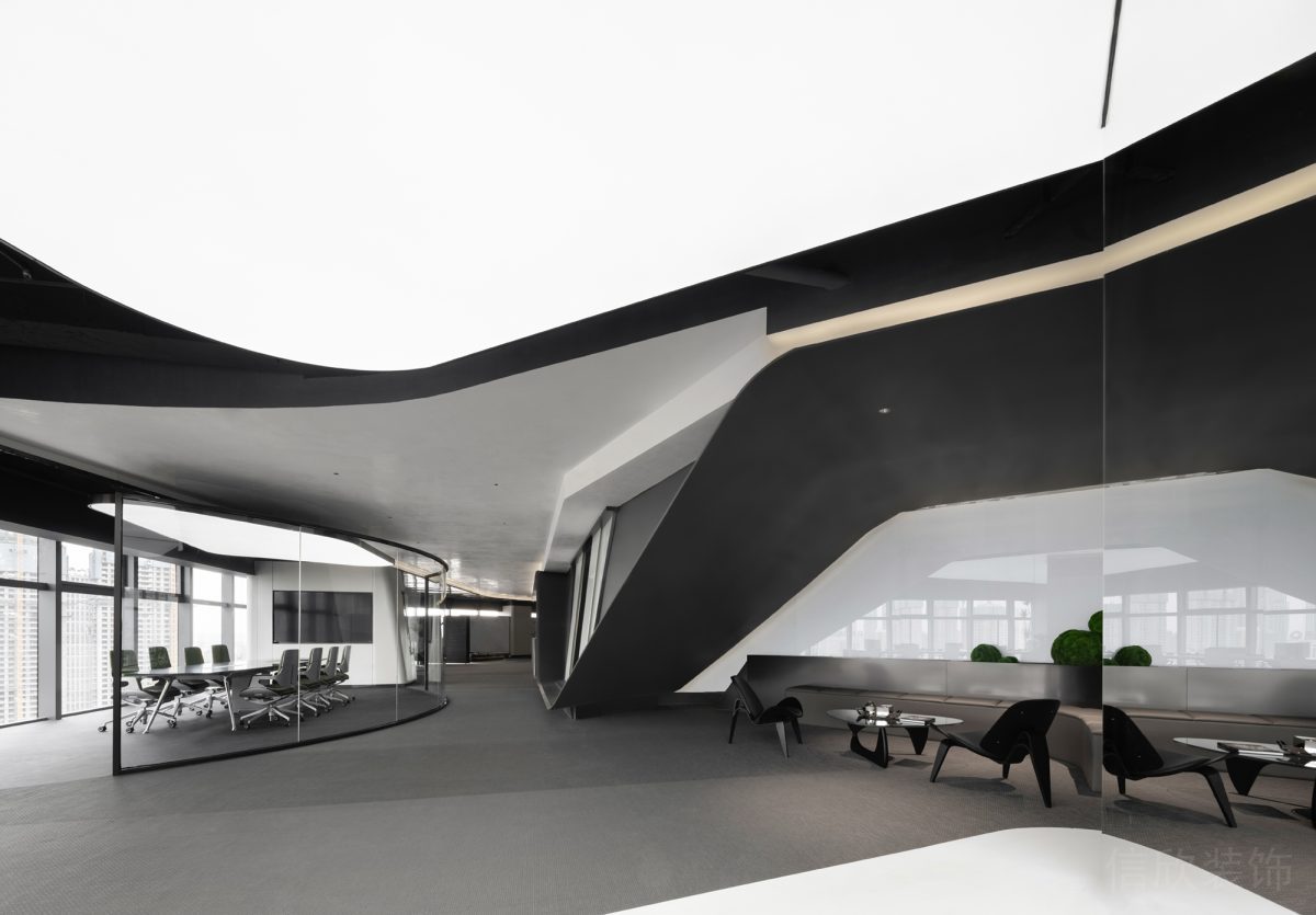 辦公室的平面設計,功能性分區合理,使用性強,在滿足使用條件的前提下,用黑白兩色的經典搭配,呈現出簡約而不簡單,充滿藝術感的辦公氛圍。