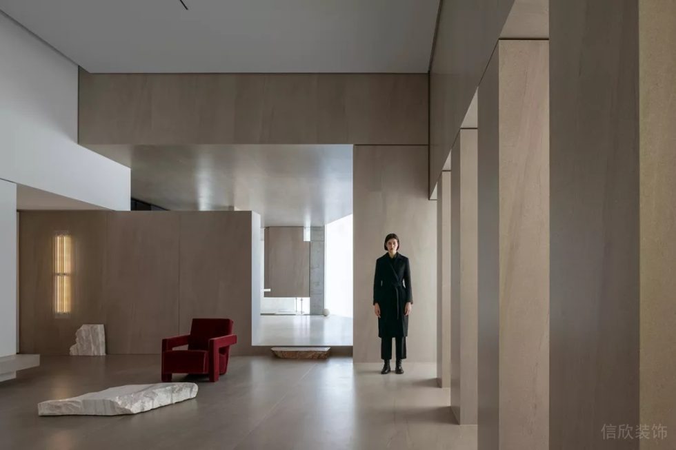 大展廳主要以灰色為主,簡單的色調能更加突出展廳的特質。