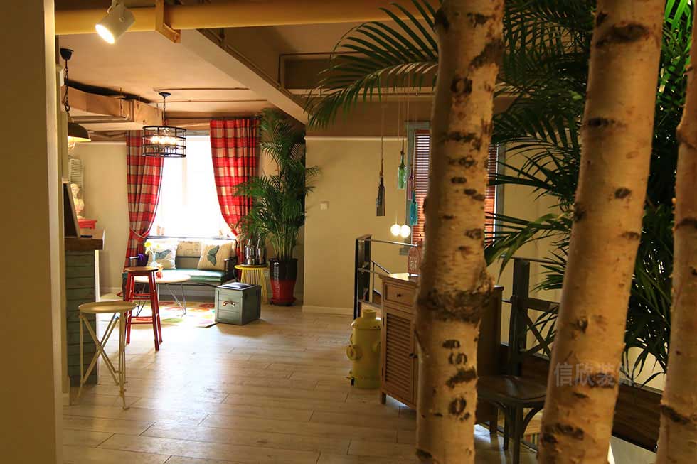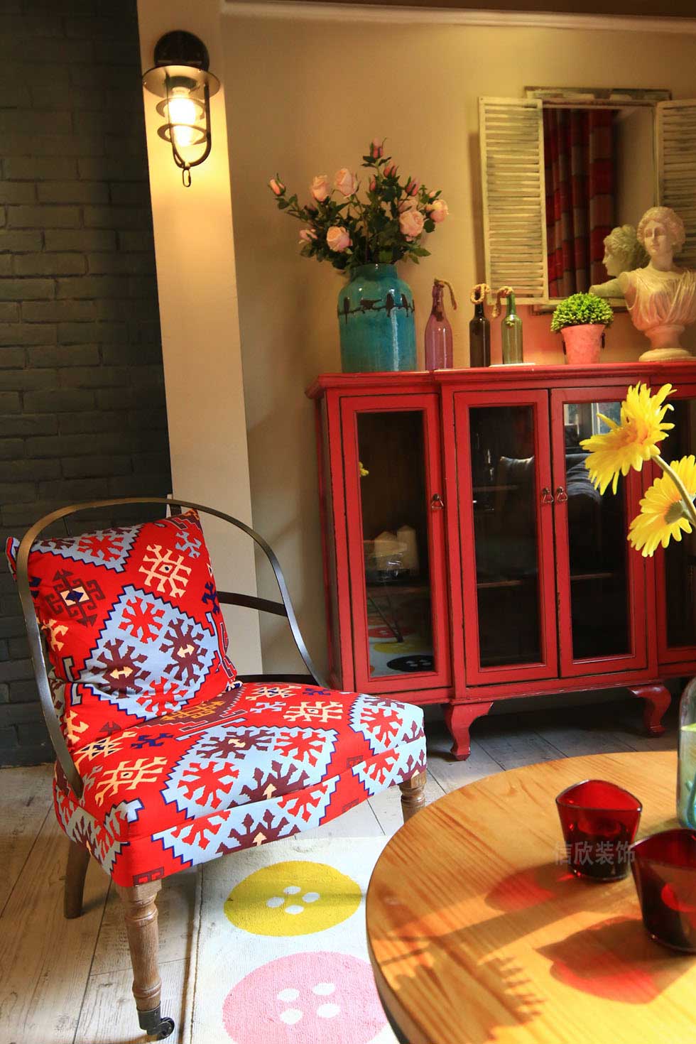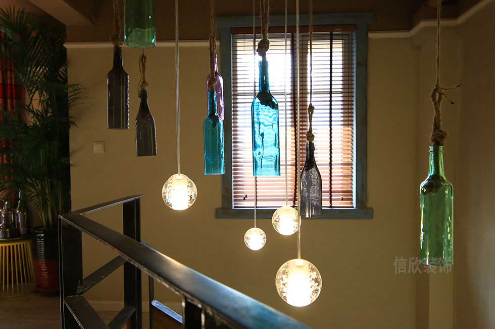原木色的地面,手工制作的鐵藝小皮沙發(fā),結(jié)合各種手工的柜子,茶幾,鐵藝吊燈等元素,非常有一種古舊但是溫馨的家的感覺(jué),也符合北歐風(fēng)的環(huán)保和綠色的生活理念。