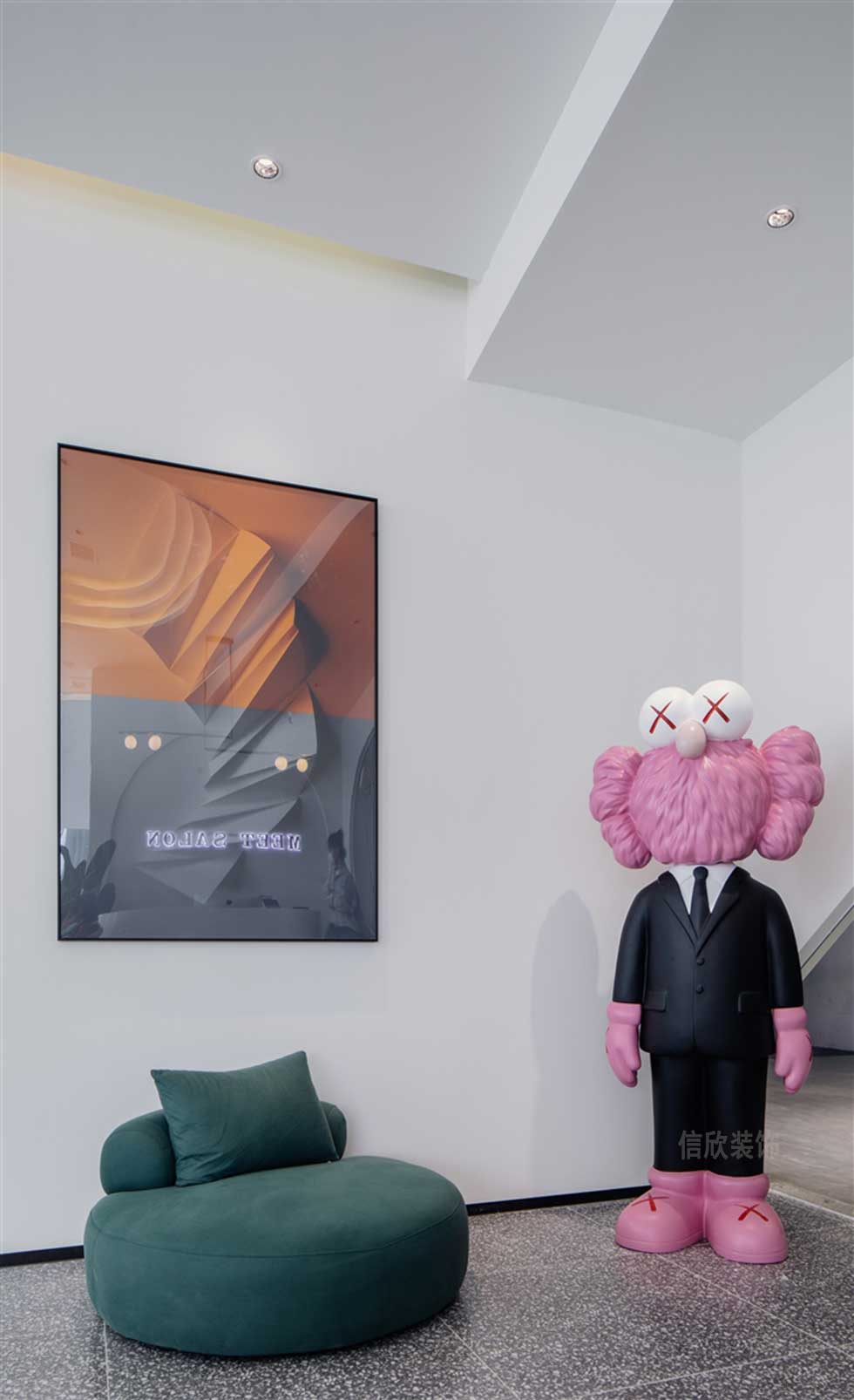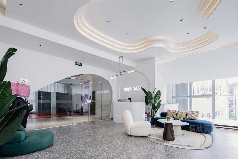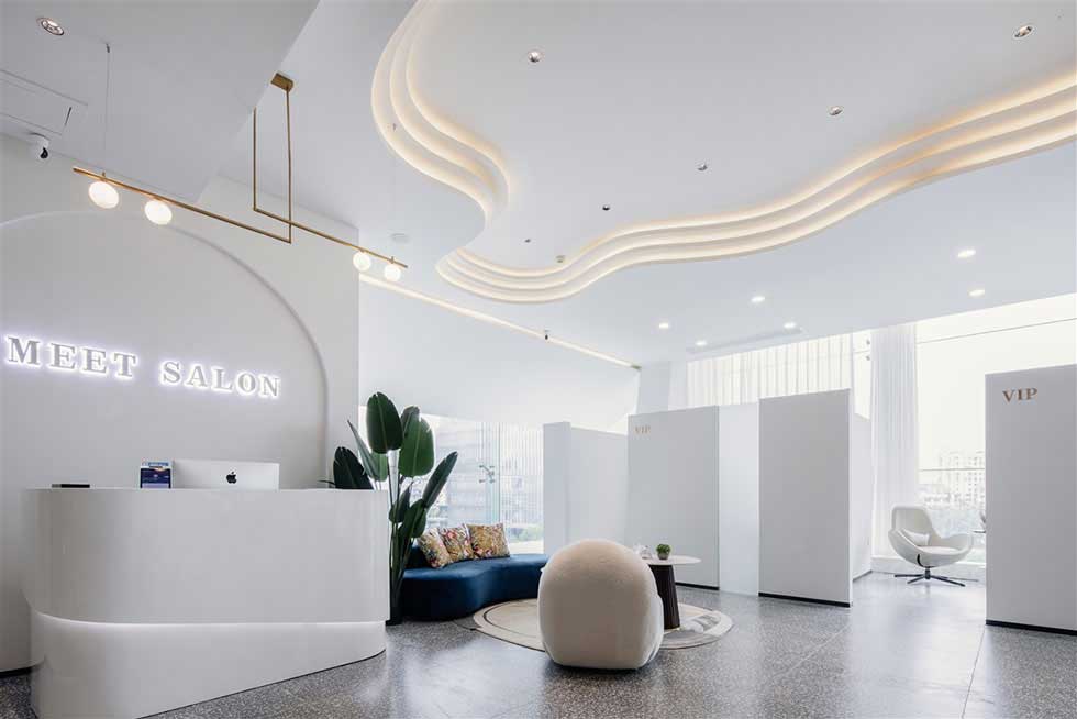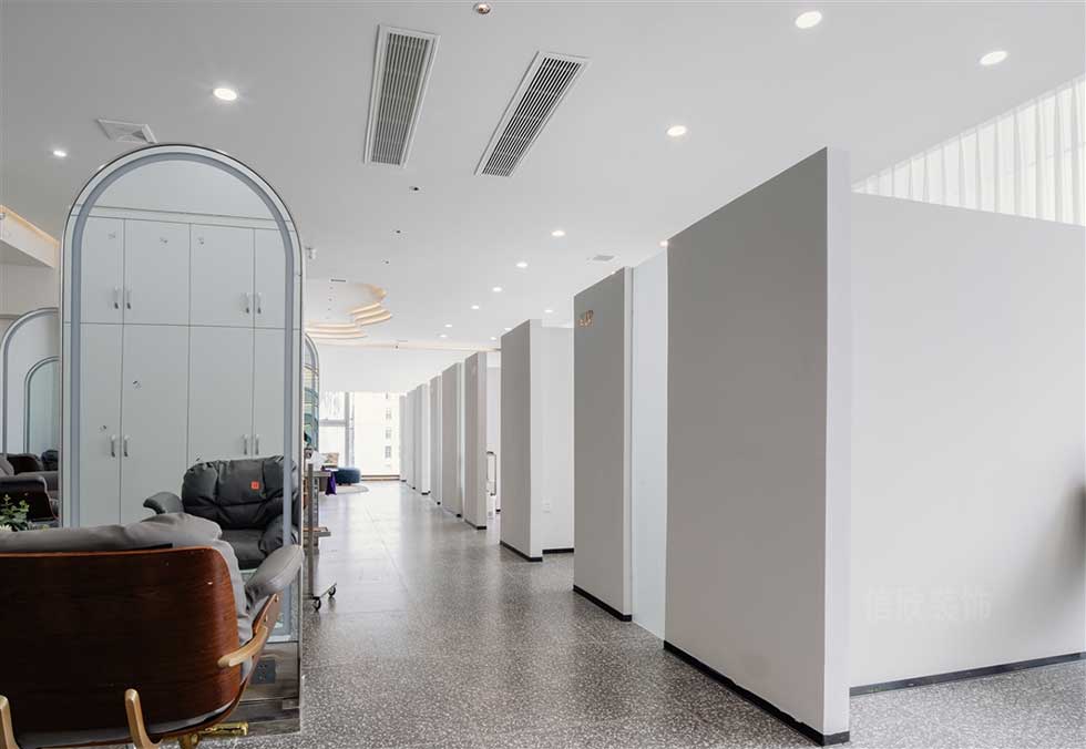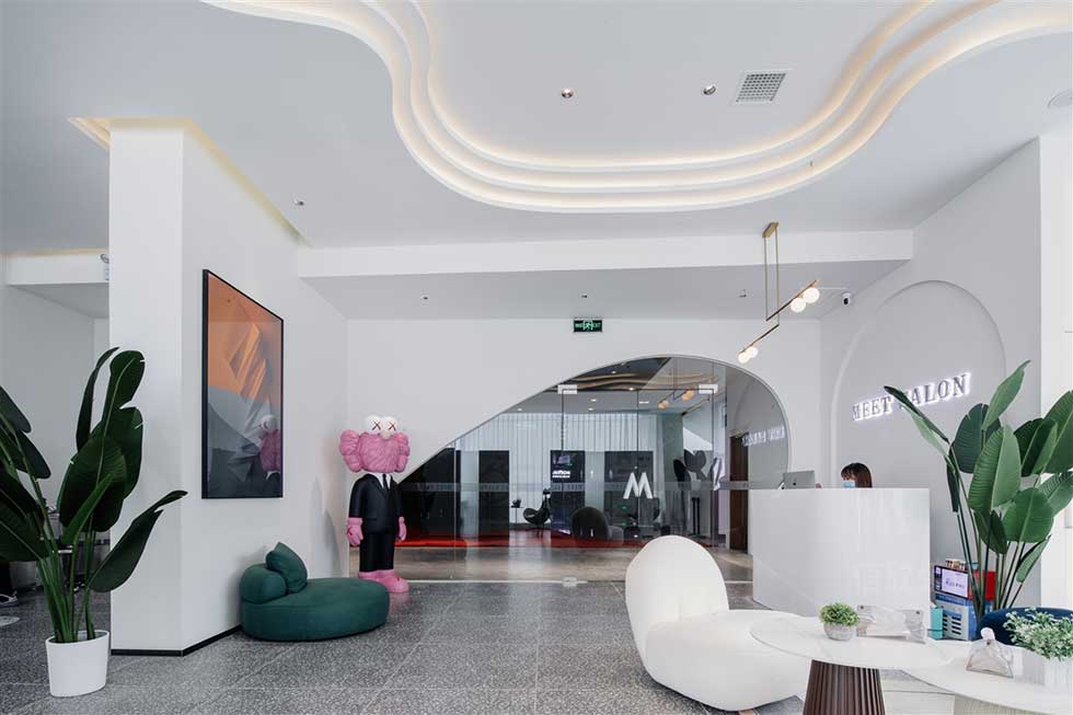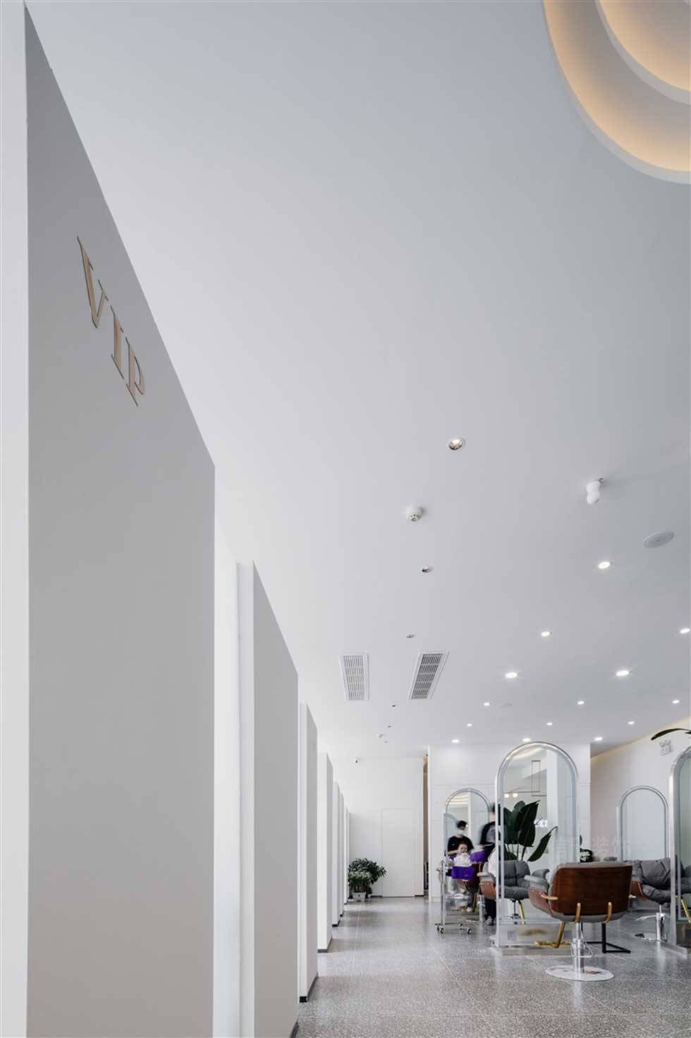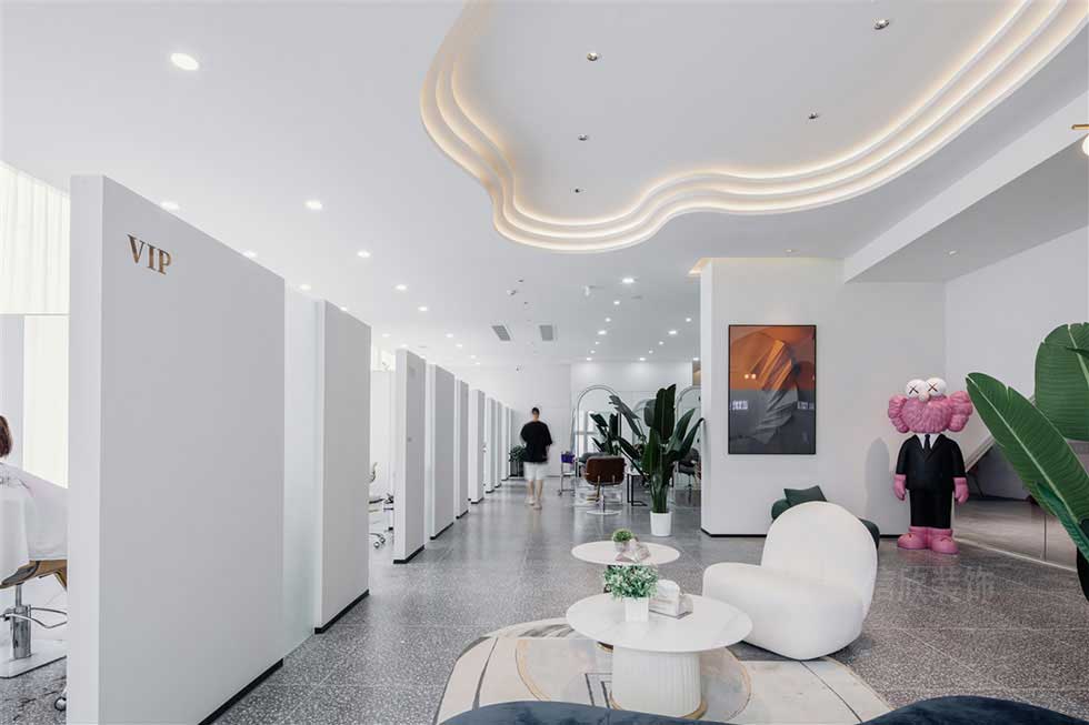 設計理念:本案是一所現代風格的大型高端美發沙龍裝修設計案例,