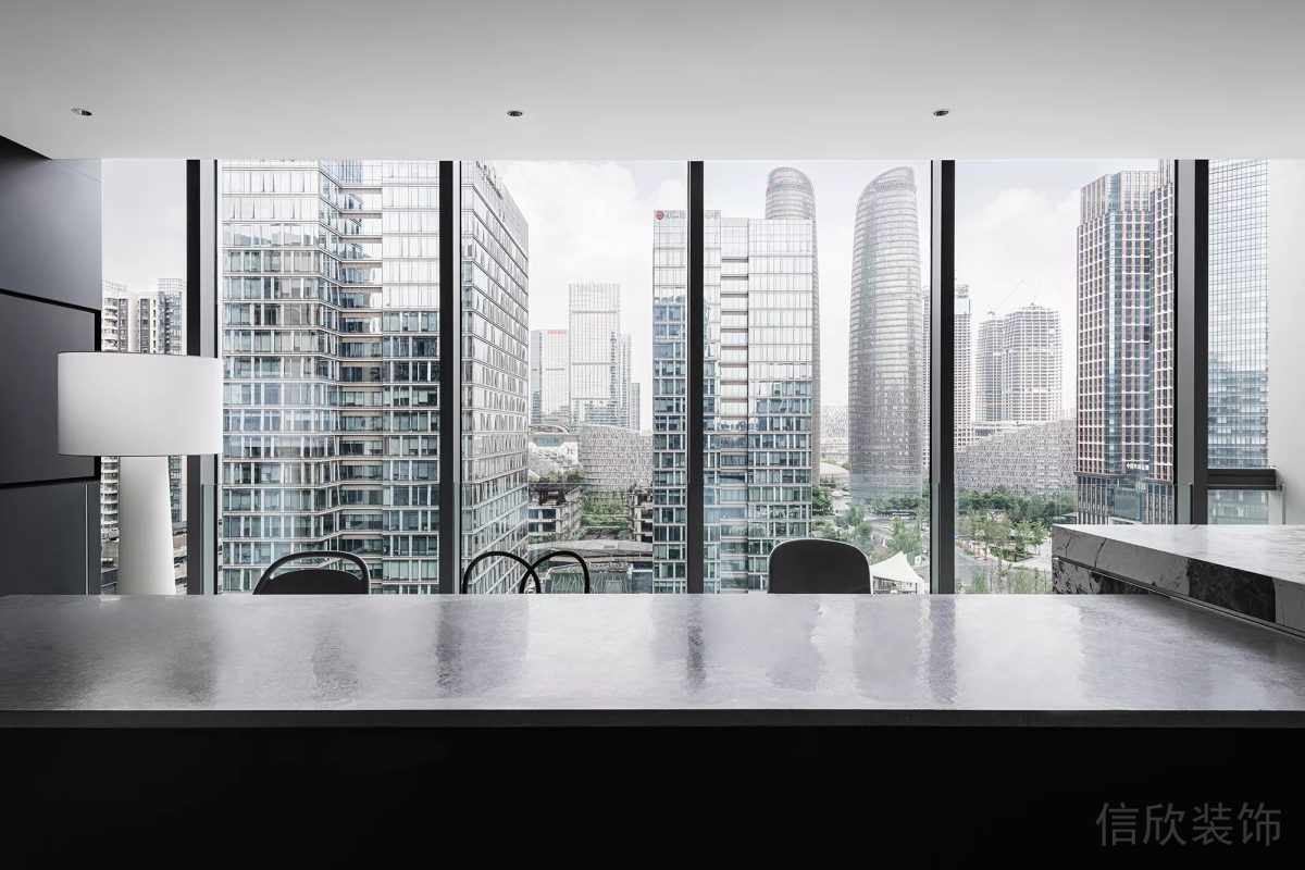 ?黑色金屬邊框的玻璃隔斷能有效劃分空間,同時保持開放感。
