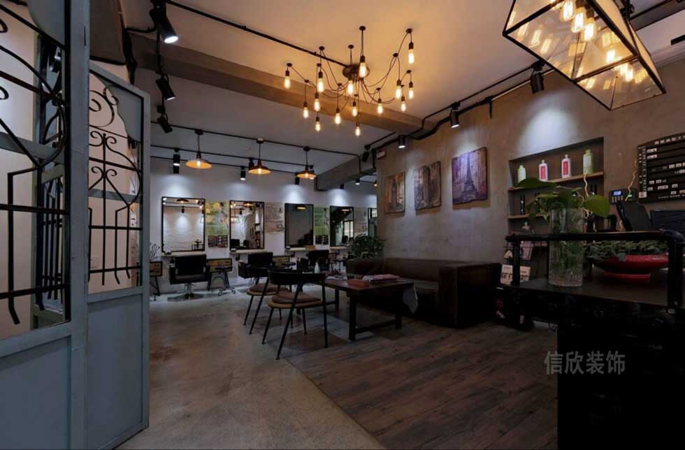 設計理念:本案是一所工業風的美發沙龍裝修設計案例,工業風在墻面與地面的裝飾上一般都會選擇裸露的磚塊,或者在磚塊上粉刷黑色、白色或是灰色作料,粗糙的質地、斑駁的機理效果都會表現出一種舊舊的卻又非常時尚粗獷的視覺效果。水泥墻或者水泥地面是工業風格裝修的經典元素之一,水泥墻面泛著冷靜的光澤看似冷漠卻又非常具有現代感。墻面有時會用涂鴉的裝飾方式表達它的特別之處。頂面水泥頂面會保持原有色彩或者涂刷成黑色,原始的水電管道排布其下,或隱秘或在燈光的照射下偶爾閃現出一道金屬光,神秘感覺十足。