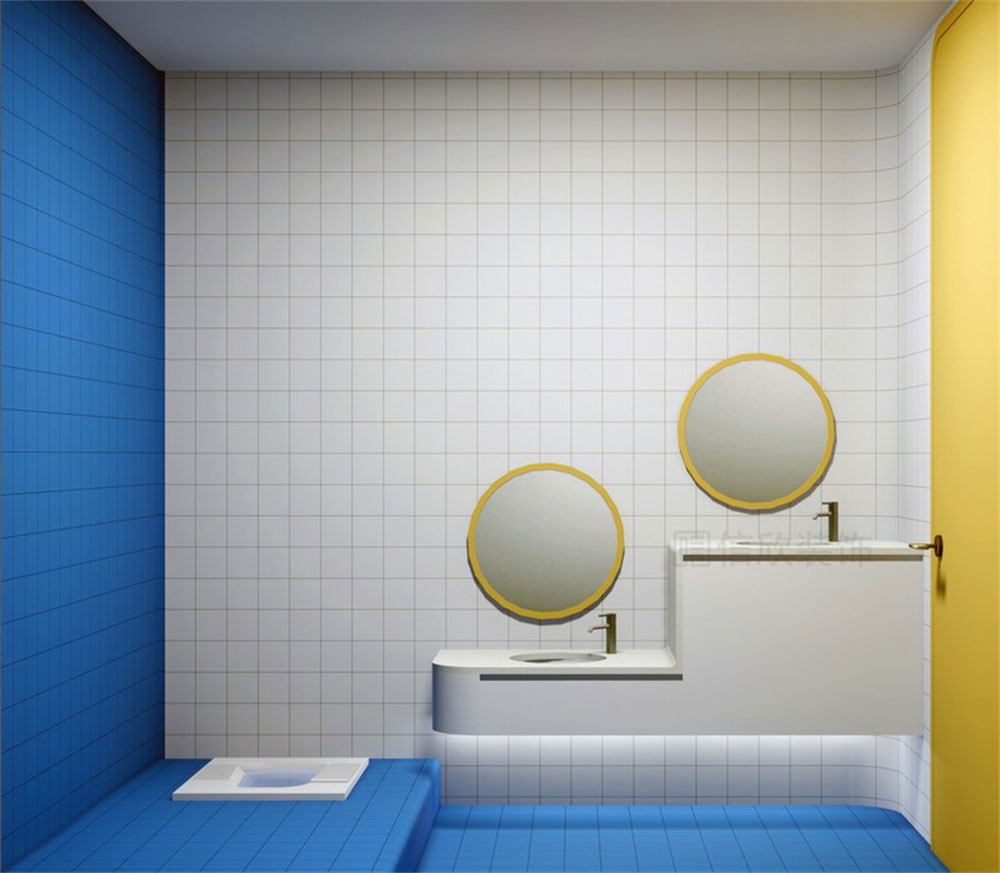 簡單的復(fù)古磚鋪設(shè)的衛(wèi)生間,充斥著女孩粉紅色的公主夢,和男孩藍(lán)色如大海般的自由,白色凹凸不平的洗手臺(tái),既從人體工程學(xué)中考慮了大人和孩子日常使用的方便;又增添了
