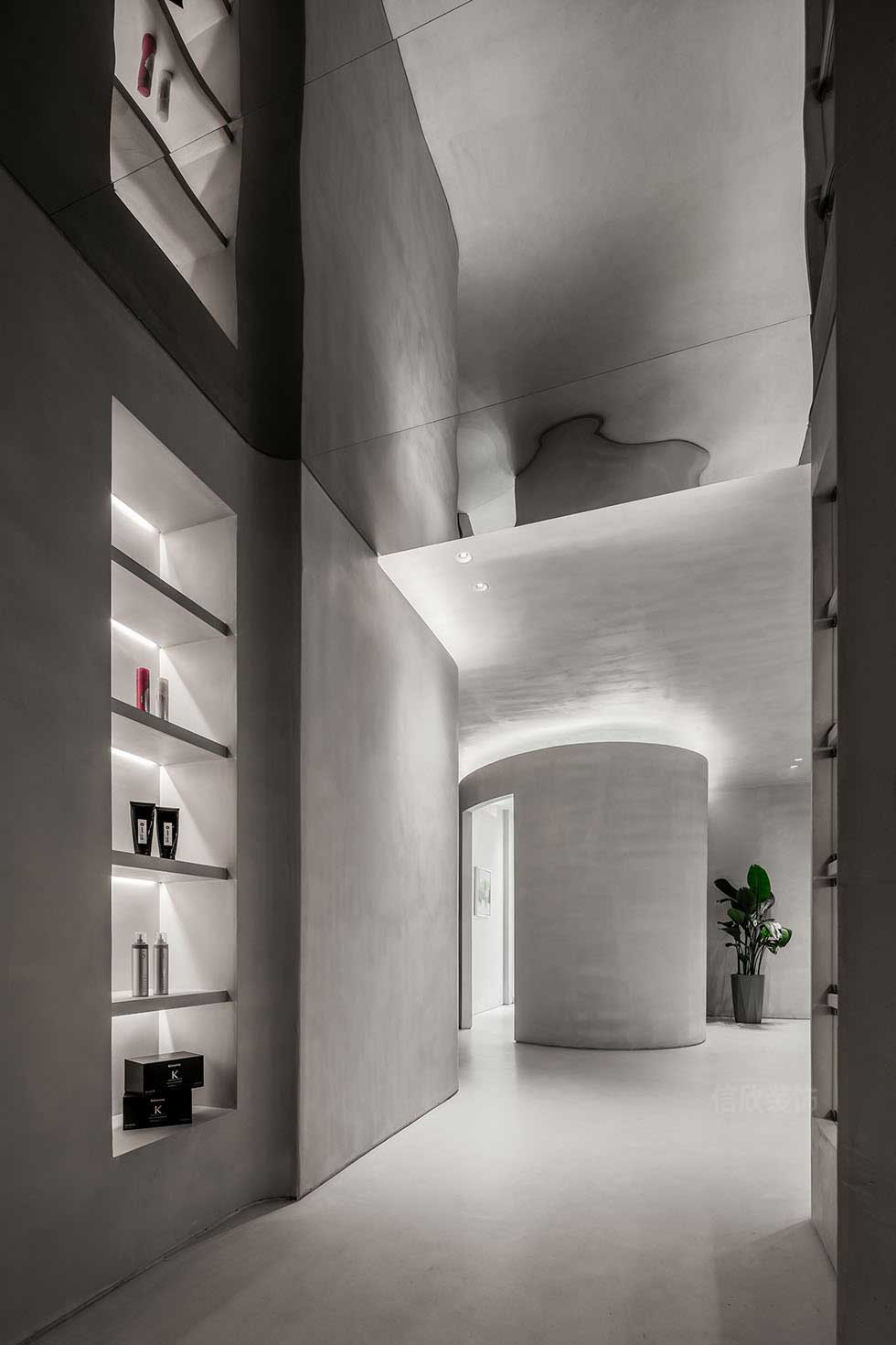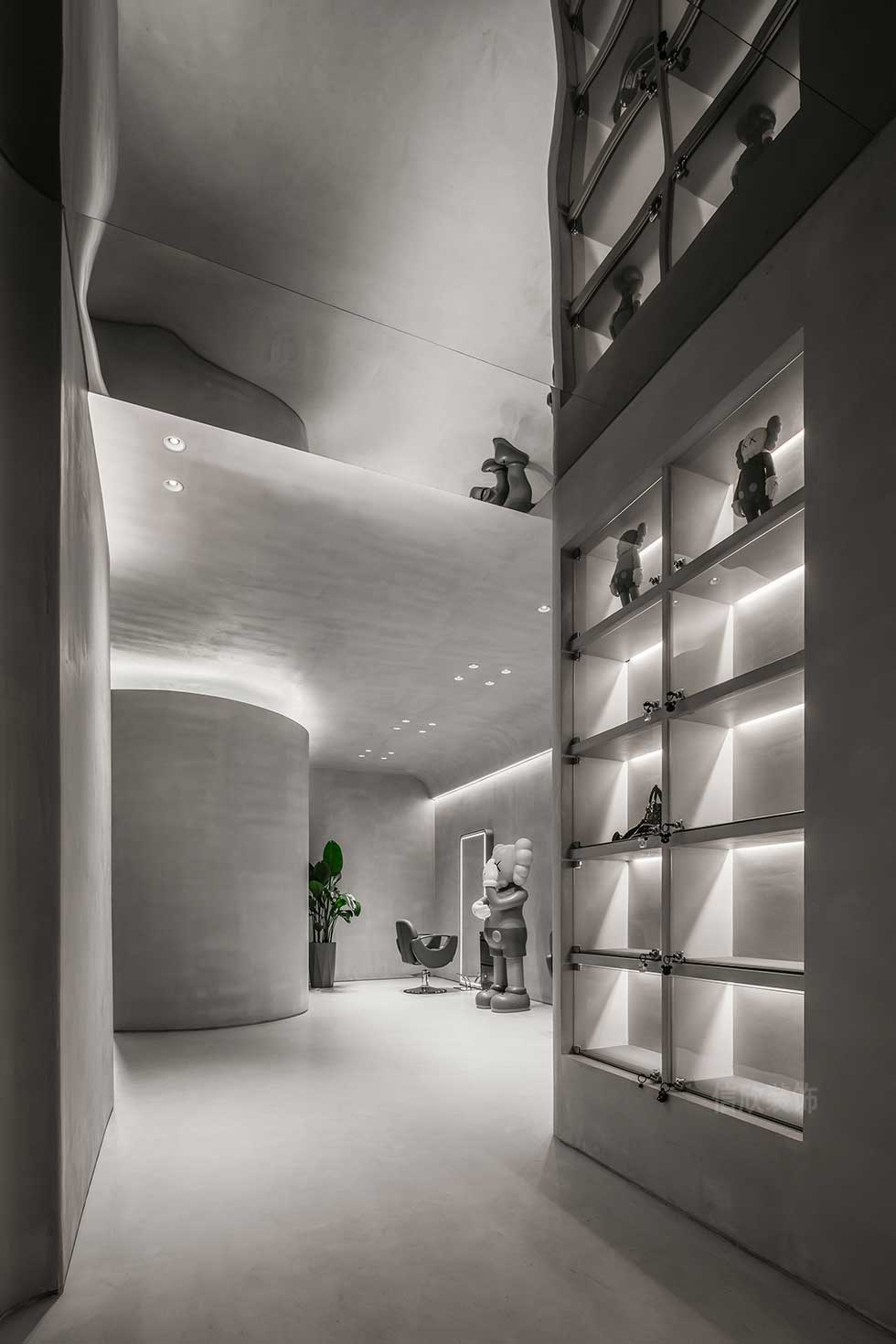 精神性可以被具象或抽象地表達,設計師在有限的空間內尋找屬于空間本身的最簡潔有力的語言。區別于市中心的喧鬧,空間靜靜將人引入脫離平庸的新銳世界,遵循了獨特的質感邏輯,隨物賦形,創新與融合空間造型。