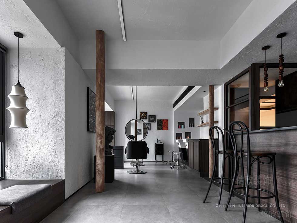 前臺作為小吧臺的形式,深色木紋的肌理效果,藝術內涵和文青氣息爆棚,同時給人一種高端的灰色的私密性,取代了傳統門庭若市感覺,增加了客戶自我肯定和特殊性。