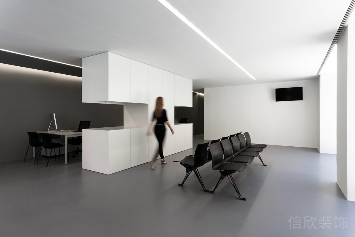 在人工位旁邊設計內嵌墻柜,增加儲物空間,保持桌面整潔。