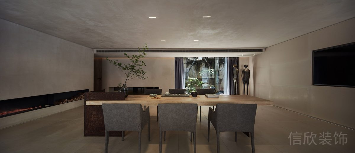 木質天花板增添溫暖感,同時與現代元素形成對比。
