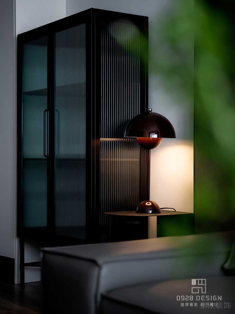 客廳一角,精美的臺燈,看電影的時候不想燈光太亮就打開小臺燈吧。
