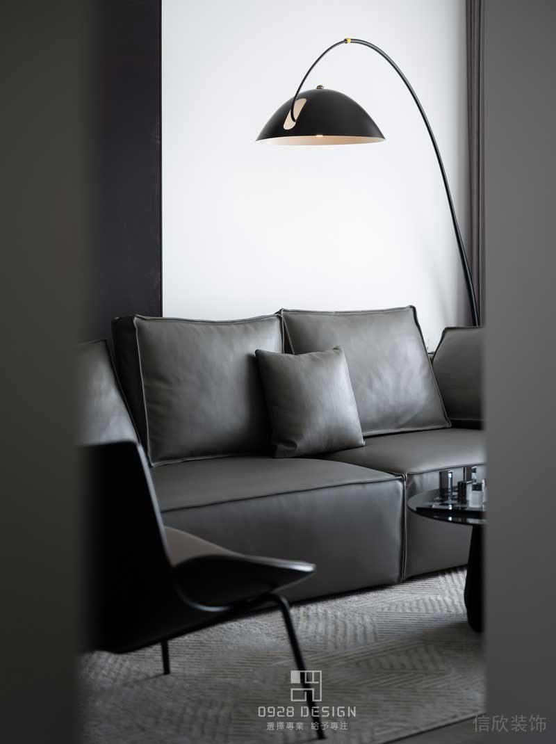 黑色玻璃茶幾讓空間看起來更加精致,主沙發一頭大一頭小,在家的時候躺在沙發上休息也是特別愜意的事情