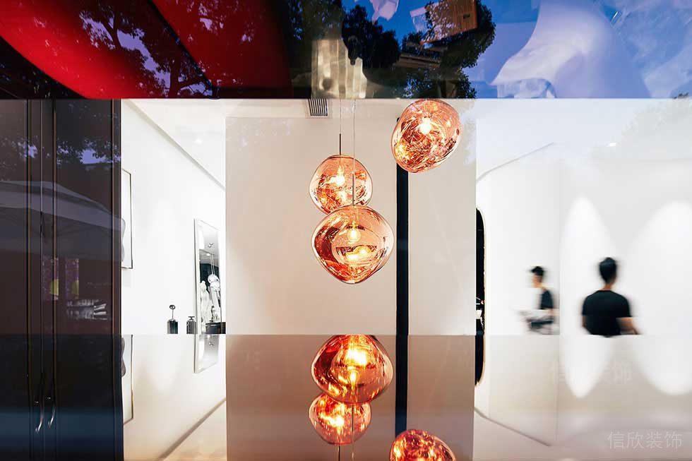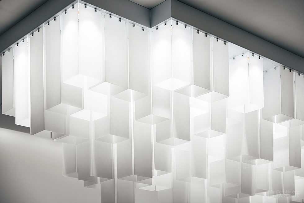 ▼理發(fā)區(qū)中央的管形藝術(shù)吊燈