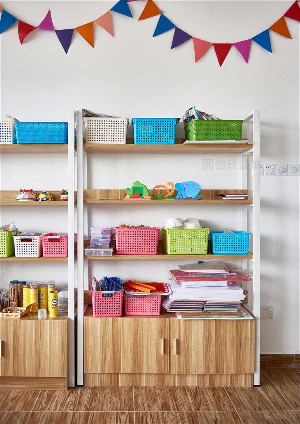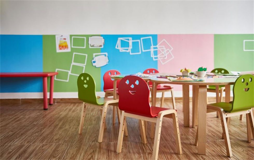 白色的大面積墻面,原木色的地面,大量的留白空間,簡單干凈,寓意著孩子們的人生圖畫,還是留給他們自己來勾勒。
